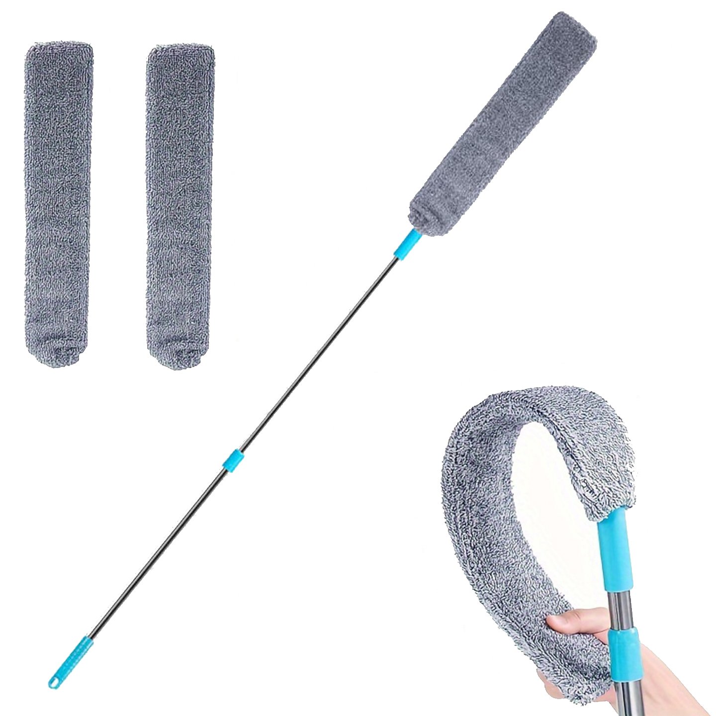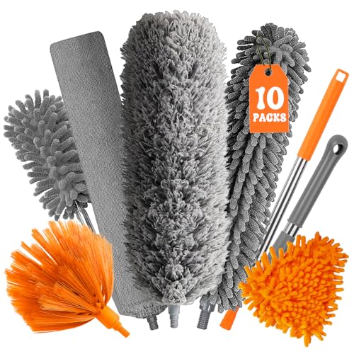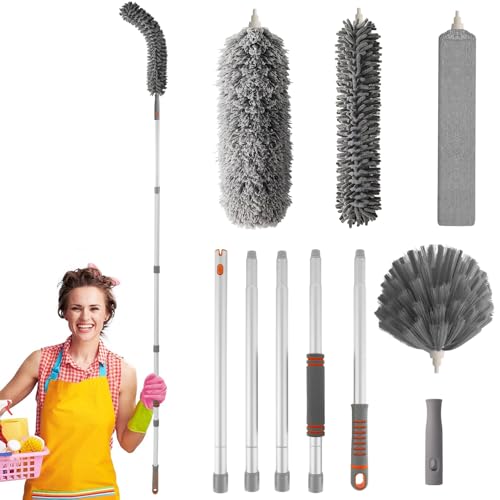 GIBOHOM 10 stycken teleskopdammvippor, tvättbar dammvippa, lång, utdragbar upp till 255 cm, spindelvävsborttagare med teleskophandtag och krok, dammtorkare mikrofiber för luckor, tak, spindelväv