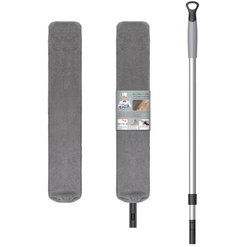 MR.SIGA Dammvippa mikrofiber, hörnkvast, dammtorkare, lång utdragbart handtag, dammborste med teleskop, dammvippa, tvättbar, för tak, golv, möbler, skåp, flexibel