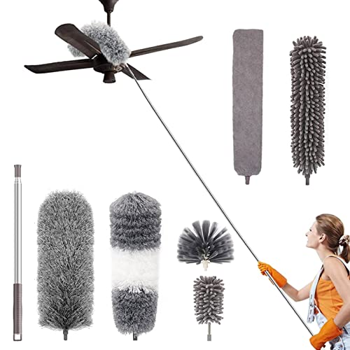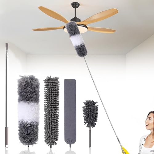 ASelected dammvippa teleskop tvättbar dammvippa lång utdragbar mikrofiber dammvippa med 274,3 cm teleskopförlängningsstång för rengöring av fläktar med högt tak (grå)