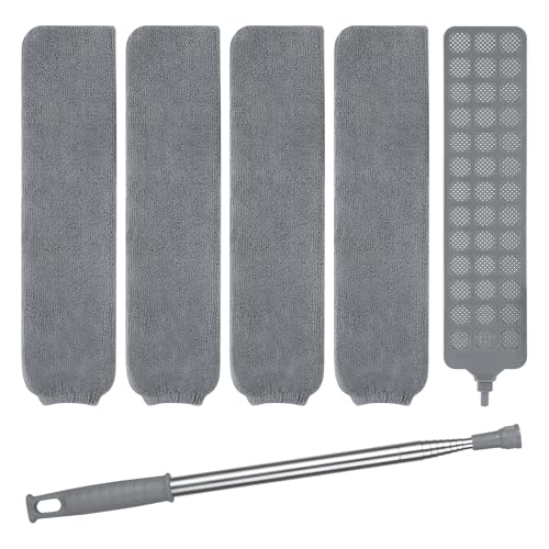 Vicloon dammrengöringsborste, dammborste med teleskopisk stång, mikrofiber dammvippa med 4 st. tvättbara dukar för att rengöra botten av sängen, dammigt hår