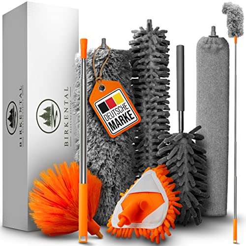 Birkental Dammvippa teleskop lång utdragbar upp till 2,50 m och tvättbar, dammtorkare i 7-delat set, mikrofiber dammmagnet Magic Duster, dammfångare hushåll och kommersiell, böjbar hörnkvaststång