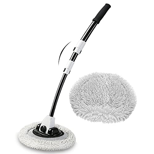 15° Krökt Biltvättborste Med Långt Handtag 43" Utdragbart Aluminiumlegering Bil Tvätt Borste Kit Exteriör Interiör Mikrofiber Biltvätt Tillbehör Moppar för Motorhome Dammvippa Till Vindruta Skrapa