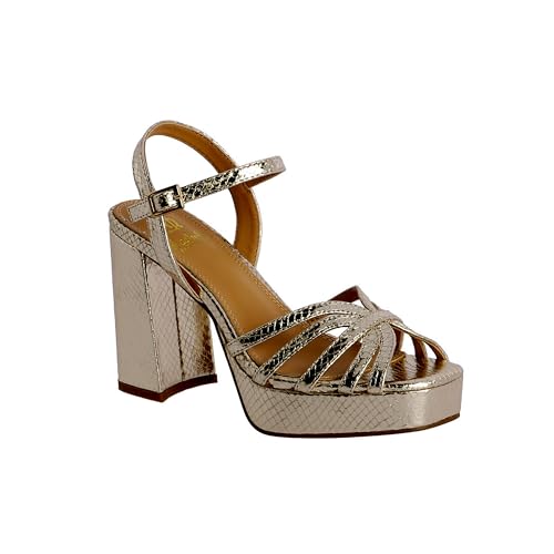 EL CABALLO Scala El Caballo - Damsandaler sommar med klack - bekväma eleganta damskor, Guld, 36 EU