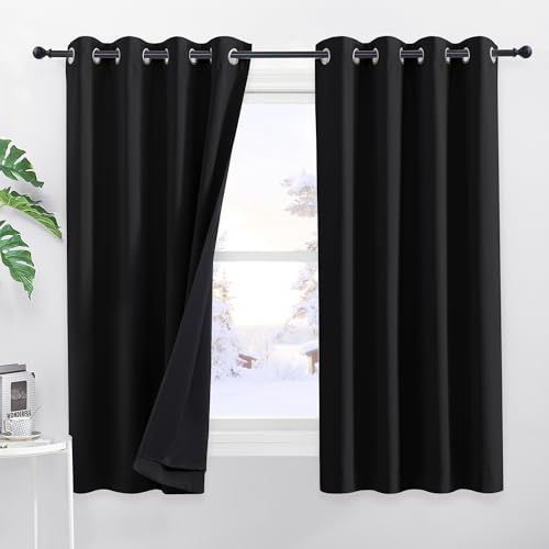 PONY DANCE Svarta mörkläggningsgardiner - tjock kyleffektiv gardin värmeisolerad med svart foder, 100 % ljusblock, svart, B 140 x H 160 cm, set med 2