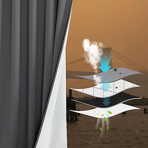 PONY DANCE 100 % mörkläggande interiörgardiner ljudabsorberande tre lager termiska isolerande gardiner med öljetter för sovrum 2 st, 132 x 213 cm, grå