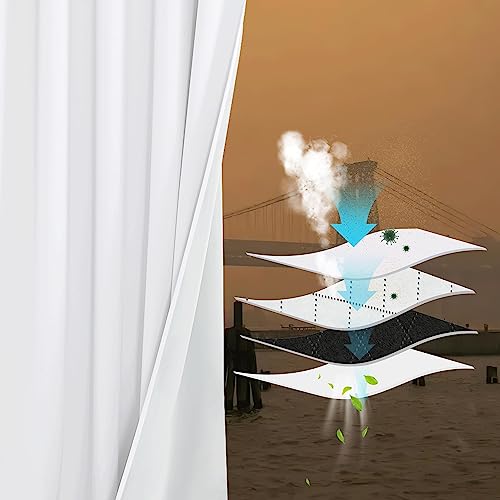 Pony Dance Ljudisolerande gardin vit ogenomskinlig öljettskynke set om 2 stycken H 240 x B 132 cm thermogardin värmeskydd fyrskikts 100 % mörkläggningsgardiner smältblåst foder för dammfilter
