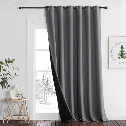 PONY DANCE Mörkläggningsgardin - stora gardiner 100 % ljusblock värmeisolering anti-kyla öljetter draperier för sovrum/vardagsrum fönsterdekoration, 1 st, B 200 x H 245 cm, grå