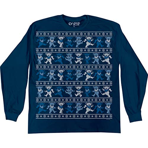 Liquid Blue Grateful Dead Dancin' Bear Xmass tröja Ls t-shirt, Marinblått Xsp, XXL