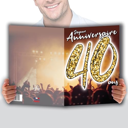 MX-5040 MAXI stort jättekort XXL för födelsedag 40 år blandat H/F + kuvert format 32 x 23 cm - siffror gyllene nummer firar dans med händerna i luften musik atmosfär konsert - tillverkad i Frankrike