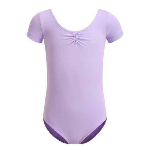ZYXWVU Kortärmad Leotard Ballet Gymnastik Dansdräkt för flickor, Lavendel, 140