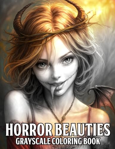 Horror Beauties Grayscale Coloring Book: Dark Elegance Coloring Pages featuring Gothic Dolls Fallen Angels and Haunting Beauties Illustrations for Adults Relaxation and Creativity