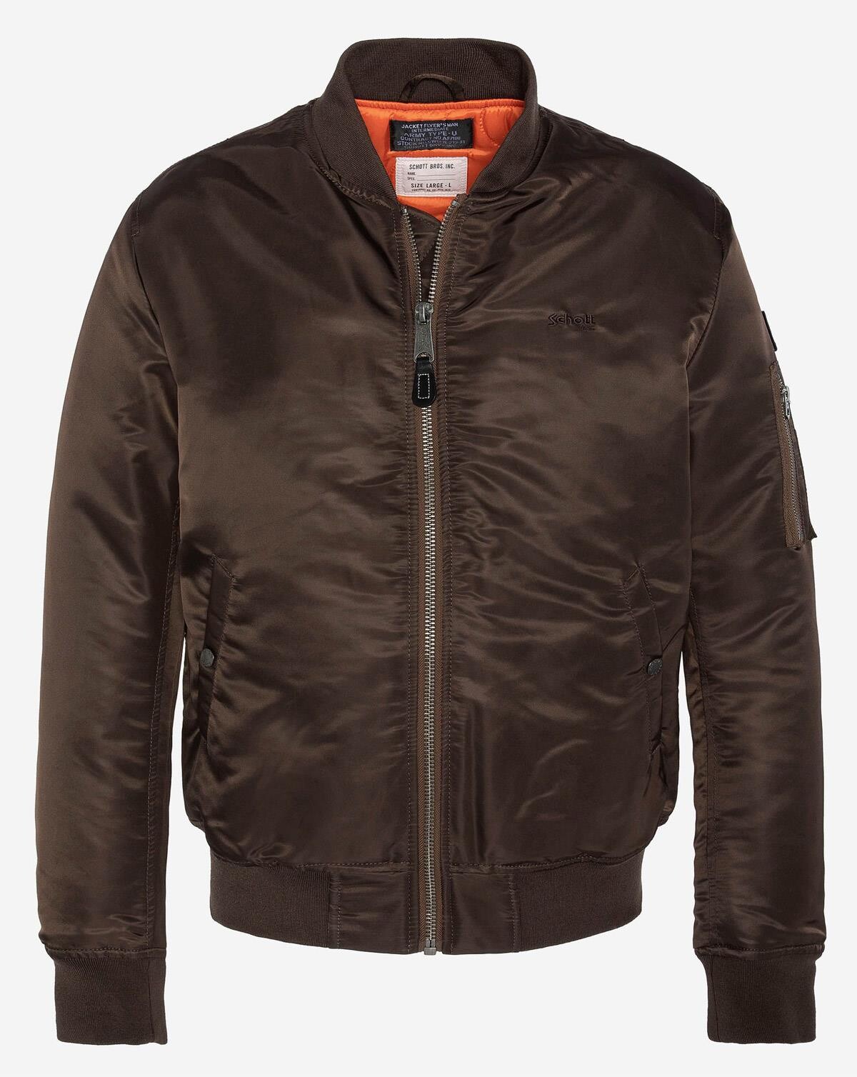 Schott Recycled Nylon MA-1 Bomber Jacket (Dark Brown, 2XL) 2XL Dark Brown