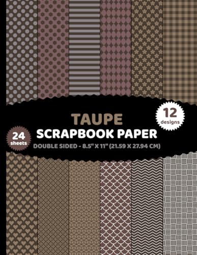 Taupe Scrapbook Paper: Double Sided Geometric Patterns 24 Sheets of Subtle Dark Gray-Brown Color for Crafts - 12 Designs - 2 Sheets/Design - 8.5"x11"