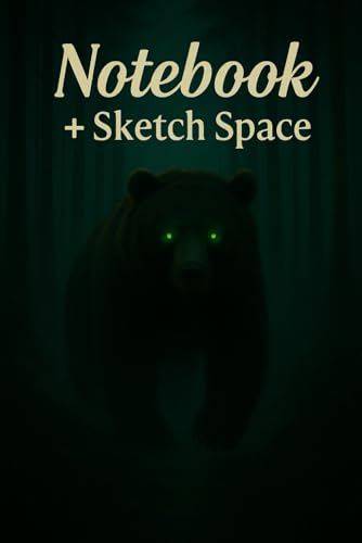 Notebook + Sketch Space – 241 pages: Dark bear with green eyes in a nocturnal forest