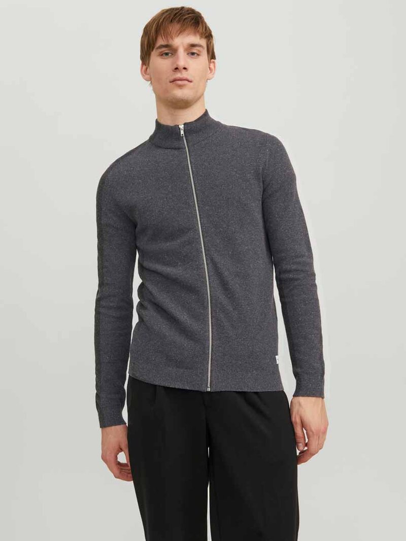Jack & Jones Hill Stickad Cardigan Herr Dark Grey Mel