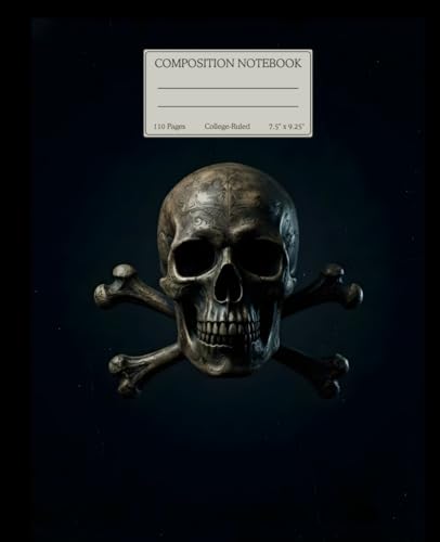 Dark Vintage Composition Notebook for Writing, Notes, and Daily Use, with an Engraved Pirate Skull on Black Background: College-Ruled Lined Journal ... Pirate Legacy, Adventure, and a Rebel Spirit