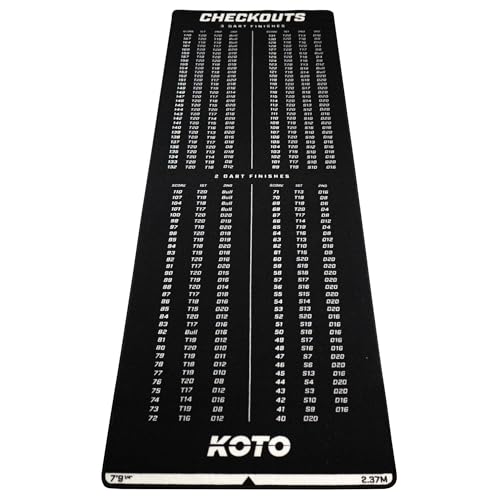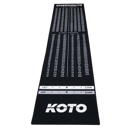 KOTO darts Koto Matta Checkout Dartmat 285 x 60 cm, robust polyestermatta, med halkfri yta, officiella reklammaterial, inklusive komplett kontrollbord, skyddar golvet från fallande dart