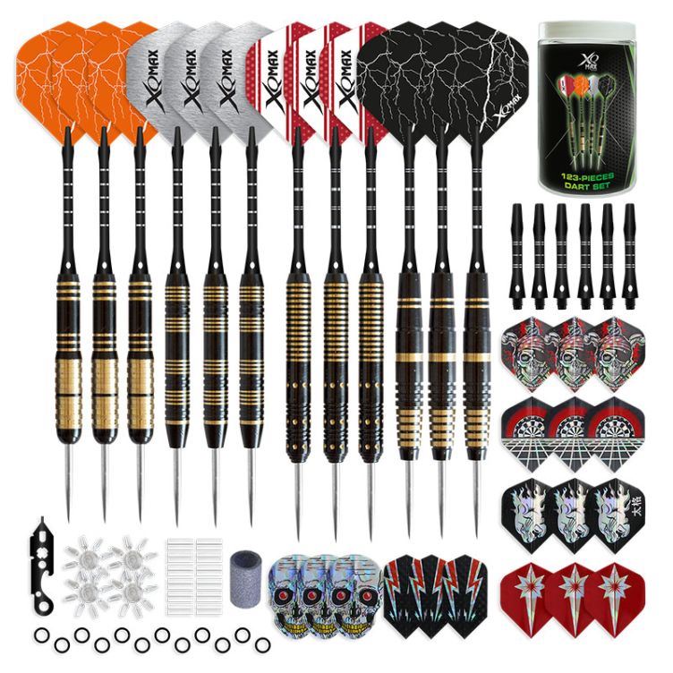 Sinwind Dartset, 12 st dartpilar med softtip och mässingspläterade stålrör, 10 extra stilar, 30 flights och 100 softtips för elektroniska darttavlor