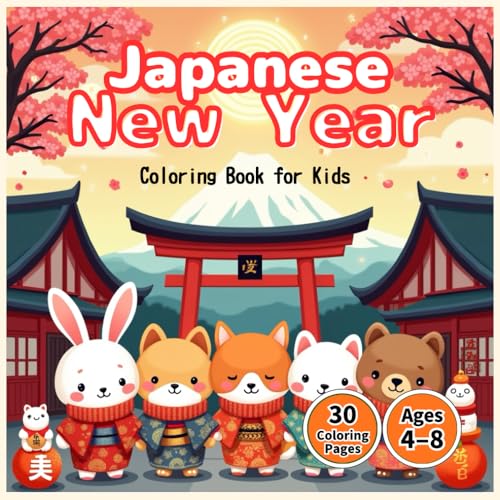 Japanese New Year Coloring Book for Kids: Daruma, Mochi, Lucky Animals, and Festive Decorations