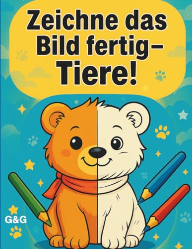 Zeichne das Bild fertig – Tiere: Kreatives Mal- und Zeichenbuch für Kinder von 4–8 Jahren | 50 Tierbilder zum Fertigzeichnen und Ausmalen