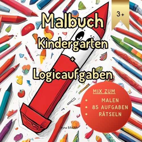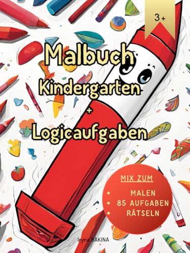 Malbuch Kindergarten + Logicaufgaben: Mix zum Malen, 85 Aufgaben, Rätseln. Sie halten ein Bild in Ihren Händen, das dank Ihrer Farben leuchtend und einzigartig werden kann!