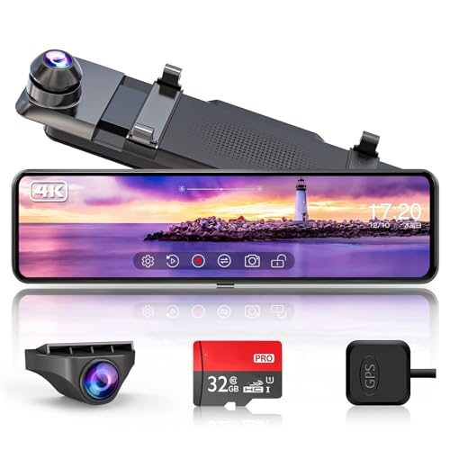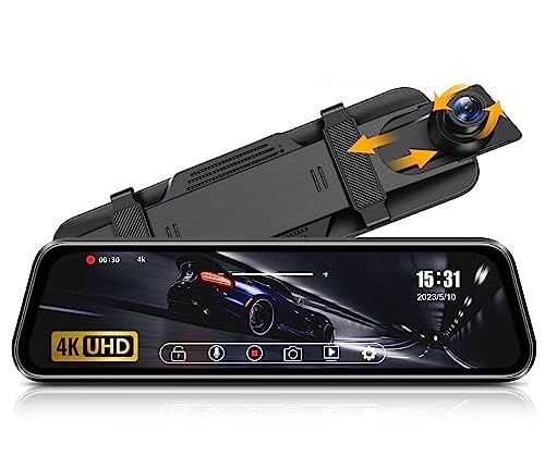 Vtopek 4K Dashcam Backspegel 10" Spegel Daschkamera med Backkamera 170° Vidvinkel Bilkamera Bilspegel Fram Bak med 64G-kort Spegelbilkamera med WDR Nattseende G-sensor Backlinje Parkeringsövervakning