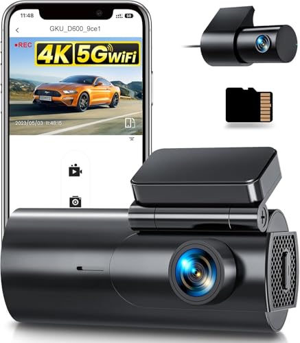 GKU 4K Dashcam Fram och Bak, WiFi Bilkamera med 64GB SD-kort, Dubbel Dash Cam, Videoövervakningskamera med Parkeringsövervakning, Nattvision, WDR, 170° Vidvinkel, G-Sensor, Loopinspelning, Max 256GB