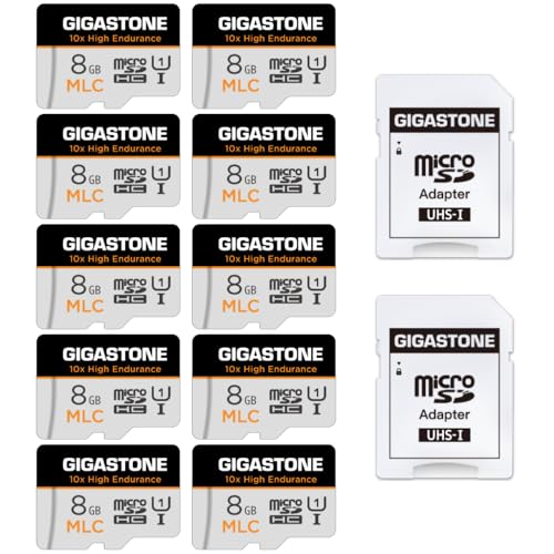 [10x hög uthållighet] Gigastone Industrial MLC 8 GB minneskort, set med 10 kort, för övervakningskamera, Dashcam, 4K video, hastighet 85 MB/s, U3 V30 [5 år gratis dataåterställning]