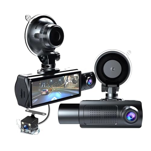 1080P Triple Dash Cam, Front Bak och Inside Record, Night, G Sensor, Rörelsedetektering, 24H Parkeringsövervakning - Bil DVR-kamera för Förbättrad Fordonssäkerhet