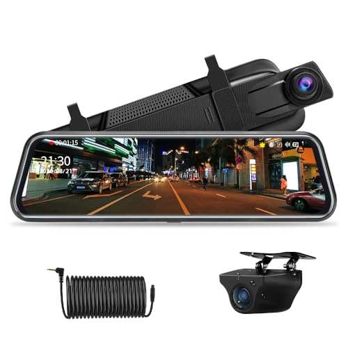 【Uppgraderad version】 Jansite 10 "Mirror Dash Cam Full Touch Screen med loopinspelning, Dual Dash Cam Bak och Fram 1080P Streaming Media DVR 170 ° Vidvinkel Night Vision med 10 meter kabel