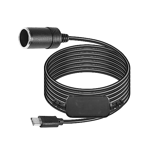 CERRXIAN 3,9 fot USB-C-kontakt till 12 V billigarettändare step-up-uttagsadapter, strömkabel för dashcam, GPS, LED-ljuslister för bil (1,2 m)