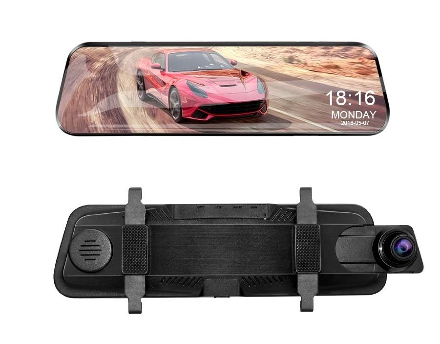Smart Backkamera och Dashcam inbyggd i 10" Backspegel, GPS Stöd, 1080p HD, Inspelning, Nightvision