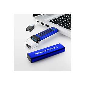 iStorage datAshur PRO+C 128 GB | Säker USB Type-C Minnessticka | FIPS 140-3 Nivå 3 Certifierad | PIN-skyddad | Type C-A Adapter Inkluderad.