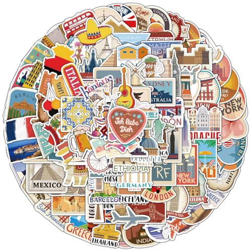 TYXHXTF 200 st resekartklistermärken – landmärken, vattentätt land, bärbar dator, bil, klippbok, telefon, skateboard, värld, stad, turist reseklistermärken för vuxna och barn