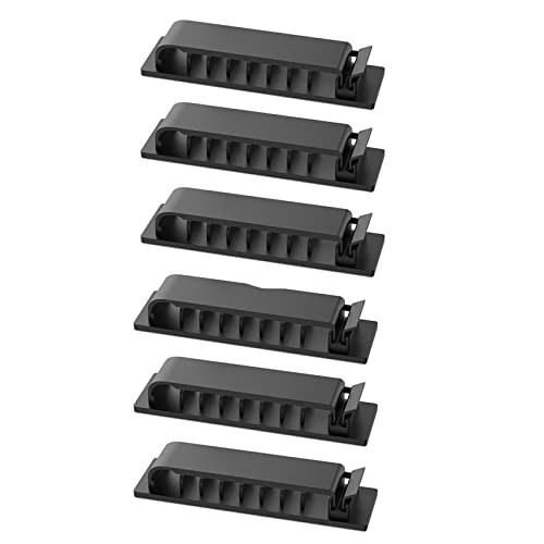 Självhäftande kabelhanteringsklämma kabelorganiserare trådklämma, mångsidig sladd skrivbord vägghållare klibbig för kontor hem bil dator TV flera sladdar hållare tråd prydlig 6 st svart