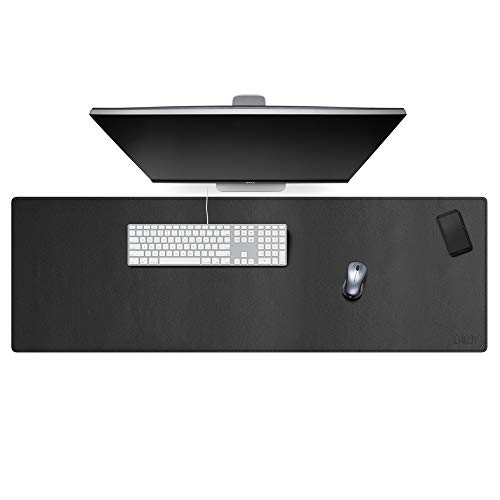 Cacoy 120 x 40 cm skrivbordsmatta i PU-läder, utökad spelmusmatta, stor tangentbordsmusmatta, vattentäta skrivbordsmattor för kontor ovanpå skrivbord, skrivbordsmatta för dator (svart)