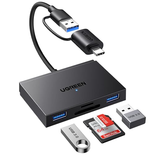 UGREEN 4 i 1 SD-kortläsare, USB C & USB 3.0 OTG-adapter och kortläsare med SD, TF och 2*USB 3.0-portar, SD-kortläsare 5Gbps kompatibel med mobiltelefon/iPad/bärbar dator/skrivbord