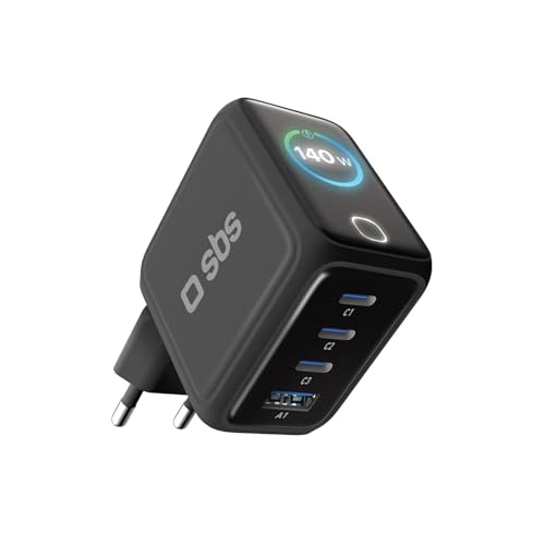SBS Pulse Power 140 W USB-C, GaN-teknik, Power Delivery (PD 3.0 PPS), smart display AI, touch-kontroll, AFC, snabbladdare, laddare för bärbar dator, surfplatta, iPhone, Samsung
