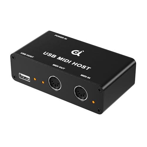 DigitalLife USB MIDI Host Box med 5-poligt MIDI-gränssnitt, Bro till USB-MIDI Tangentbord, Kontroller (Metal, 1-In1-Ut, Svart,Ingen dator krävs)