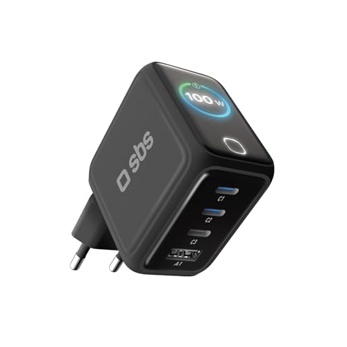 SBS Pulse Power 100 W USB-C, GaN-teknik, Power Delivery (PD 3.0 PPS), smart display AI, touch-kontroll, AFC, snabbladdare, laddare för bärbar dator, surfplatta, iPhone, Samsung