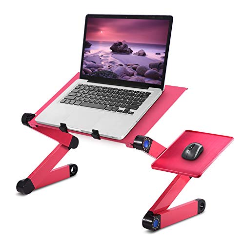 Greensen Laptopställ aluminium laptopbord fällbart bärbar dator stativ vikbart sängbord höj- och sänkbart laptopfäste med ventilationsbas och mushållare, röd