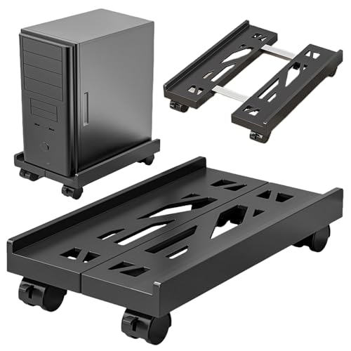 Sporgo PC-stativ: Justerbart datorfäste under skrivbord, universellt CPU-stativ med 4 hjul, PC-hållare datorstativ för datorvärd och datorchassi (2 rullar låsbar)