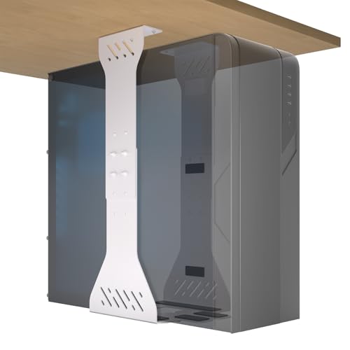 RICOO PC hållare under skrivbord justerbar datorhållare för underbord TRH02-W dator räknare upphängning bordshållare upp till 35 kg inbyggd hållare hylla serverställ stort torn hölje vit