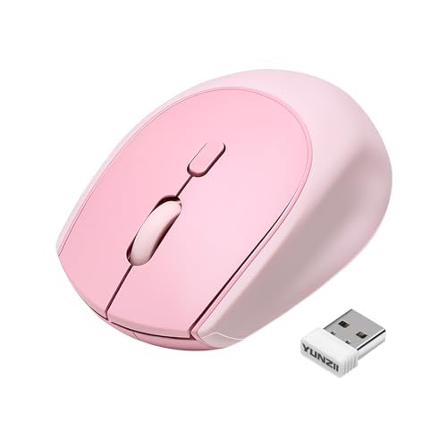 YUNZII C2 Trådlös Mus för Spel, 2.4GHz Söt Silikon Ljudlös Datormus, Tysta Klick, 3 Justerbara DPI, 1600DPI Optisk Spårning, Ergonomisk för Laptop/PC/Mac (Rosa)