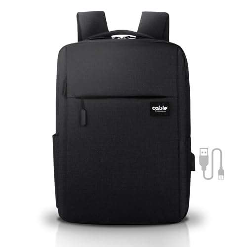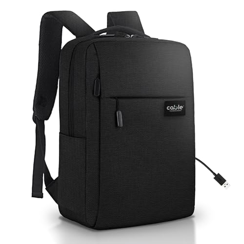 Cable Technologies 15,6 tums bärbar datorryggsäck, upp till 15,6 tum arbetsbärbar datorhållare med USB-uttag, Vattentät tyg, bärbar dator, resor, bra present för män och kvinnor, Svart
