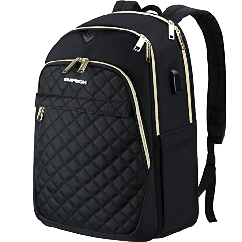 EMPSIGN Ryggsäck för 15,6 tum, snygg vattentät resväska, ryggsäck för affärsarbete med USB-laddningsport, ledig dagväska ledig dagväska college datorryggsäck för kvinnor/män svart, Svart, 15.6 Inch,