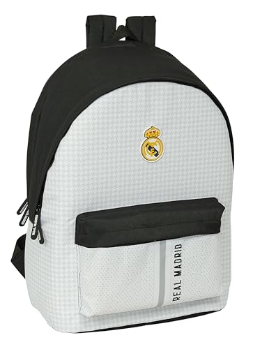 Safta Real MADRID 1:a utrustningen 24/25-15,6 tum bärbar datorryggsäck och USB, perfekt för ungdomar i olika åldrar, återvunnet tyg, bekvämt och mångsidigt, 31 x 18 x 44 cm, vit/grå färg, Vit/grå,