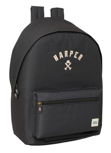 Safta HARPER & NEYER BLACK 15,6 tum och USB-datorryggsäck, perfekt för ungdomar i olika åldrar, återvunnet tyg, bekvämt och mångsidigt, kvalitet och styrka, 31 x 18 x 44 cm, svart, M, Avslappnad