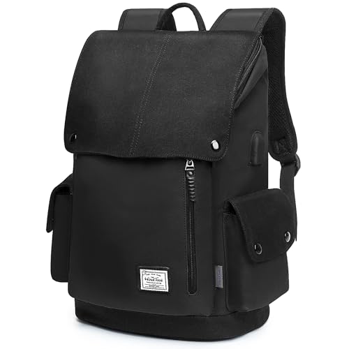 WindTook Kanvas Datorryggsäck Ryggsäckar för Laptop 15,6 Tums Med USB-Laddningsport Avslappnad Ryggsäck för Dam Herr Studerande Ryggsäck för Resor/Affärer/Högskola 30 x 17 x 45 CM Svart