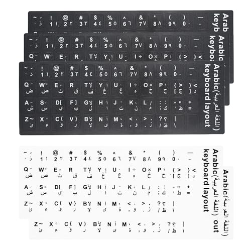 Paket med 5 arabiska tangentbordsklistermärken, arabiska ersättningsdekaler med vita bokstäver, för standardtangentbord, bärbar datortangentbord, tangentbord, 3 svarta 2 vita